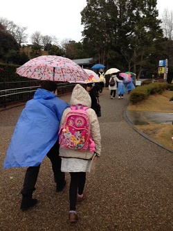動物が雨宿りをしながら、歩いている私たちを注目している姿が見受けられ、飼育員の方に「雨の日に外を歩くのは人間くらいだよ。」と話しかけられ、みんなで大爆笑しました。